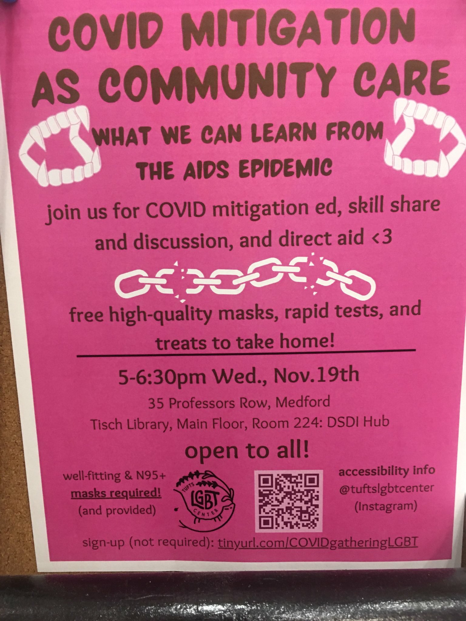 "join us for COVID mitigation education, skill share and discussion, and direct aid. free high quality masks, rapid tests, and treats to take home!"