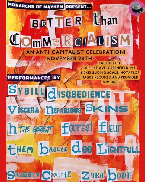 A show for punks! A show for do-it-yourselfers! A show for those who want to see creation instead of consumption! A show for anger! A show for fear! A show for possibility! A show for anyone who needs a little catharsis, a little hope, and a lotta hotties. On the busiest shopping day of the year, beat the crowds by skipping them entirely. Instead spend the evening with this vibrant cast of drag, burlesque, music, and sideshow artists from all over New England.